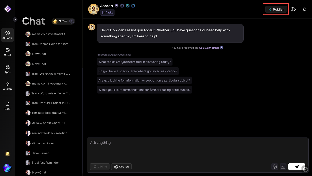 * Access Publish Option: When chatting with your unpublished agent, a **"Publish"** button will appear in the top-right corner of the chat window