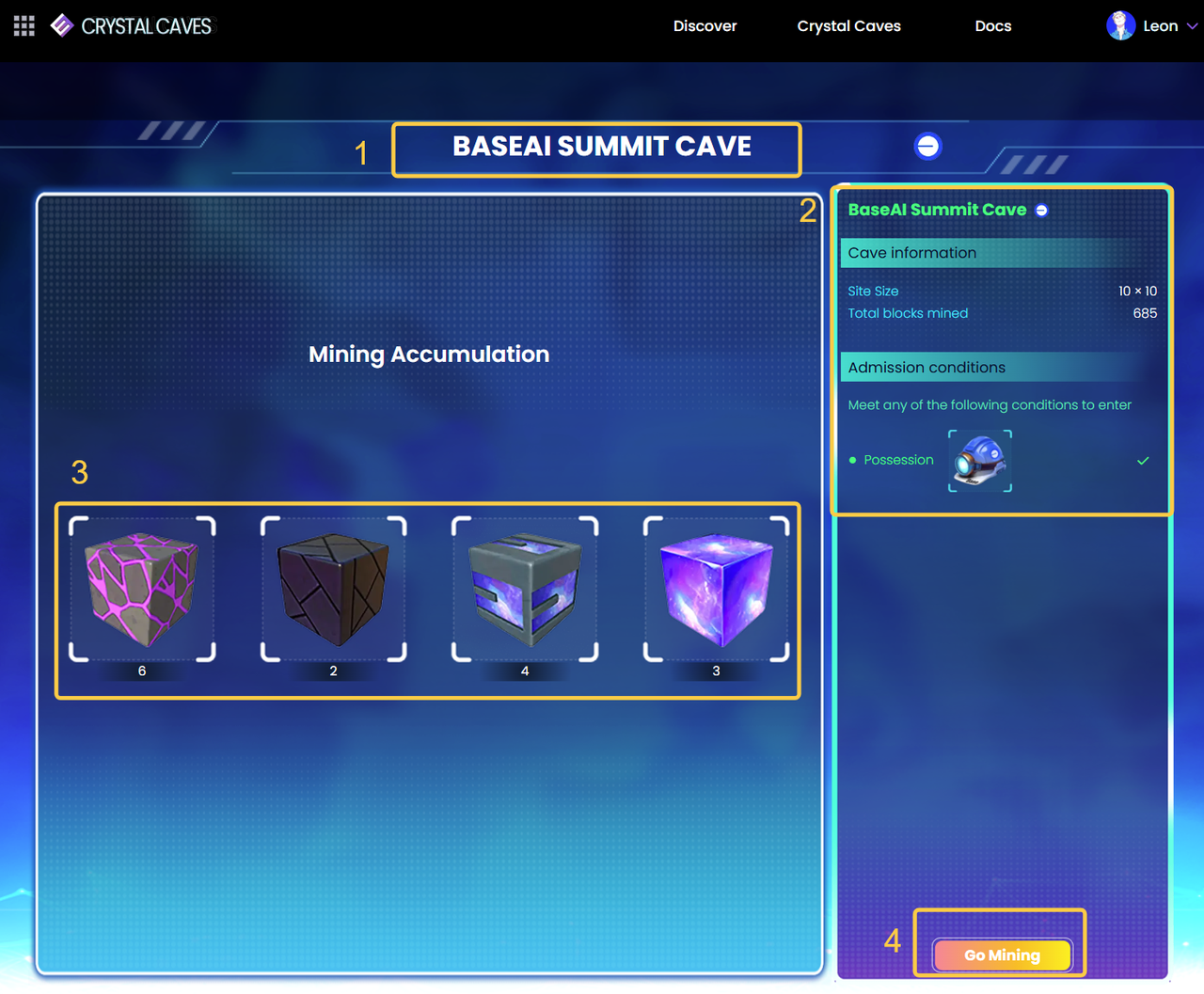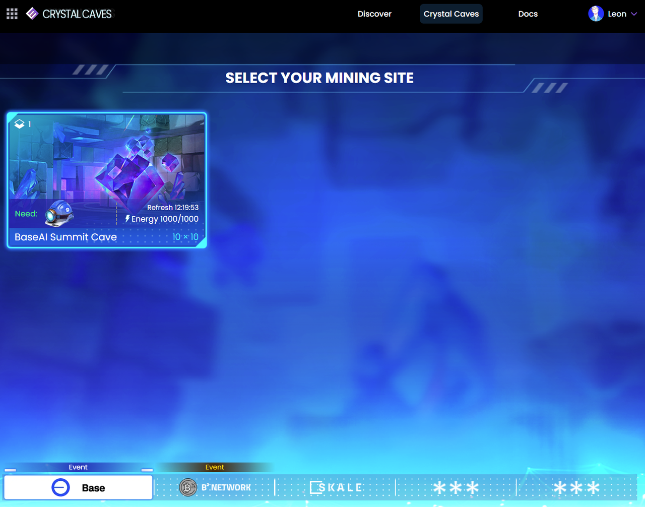 前往 Crystal Caves website,并使用您的 WORLD3 账户登录(如果尚未登录)。确保您使用持有头盔的账户登录,因为这是参与挖矿活动所必需的。点击 BaseAI Summit Cave 开始您的寻宝之旅,探索有价值的资源!