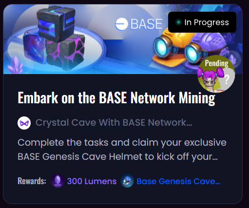 Embark on the Base Network Mining 在未完成时,会带有 “Pending”图标。