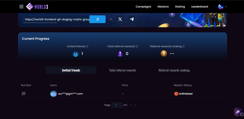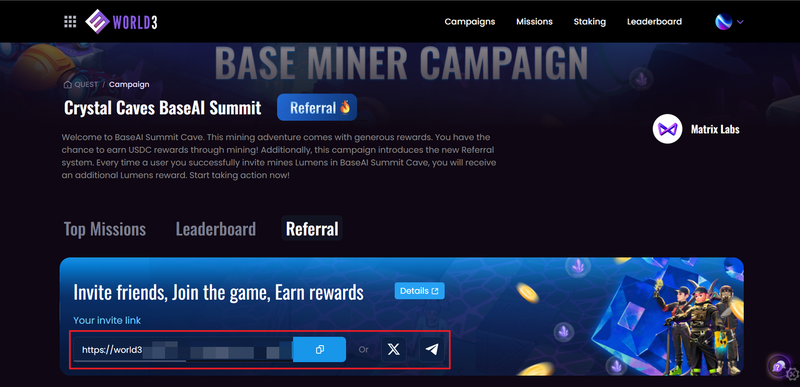 你可以在 Referral 模块中将你在该 Campaign 内拥有的独特邀请链接分享给别人。