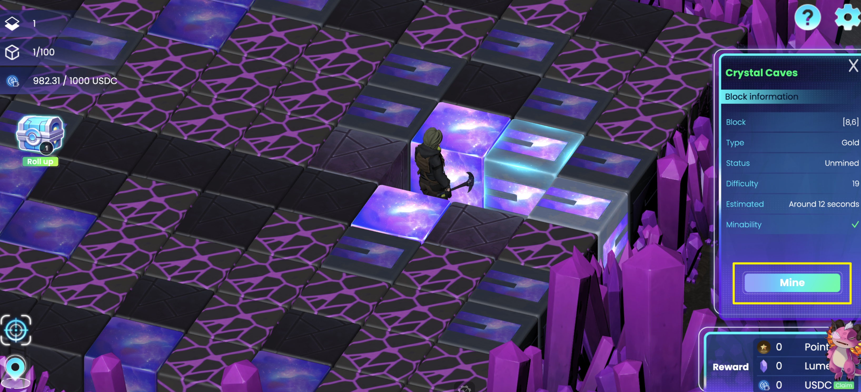 The roll-up process is now automatic if you complete a sequence. As soon as players complete the current sequence, it will begin immediately. However, in the case of a declined transaction, players will need to manually click the roll-up button and confirm the transaction before continue mining.